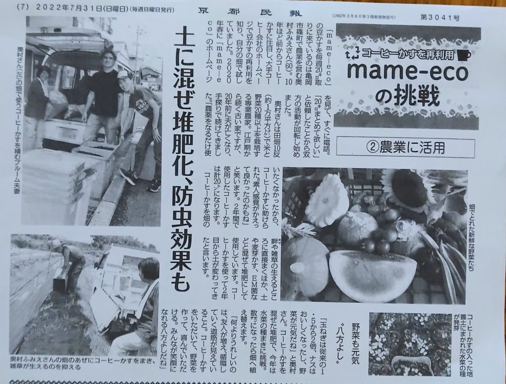 コーヒーかすを再利用して堆肥や肥料の材料に循環!mame-ecoの活動に密着